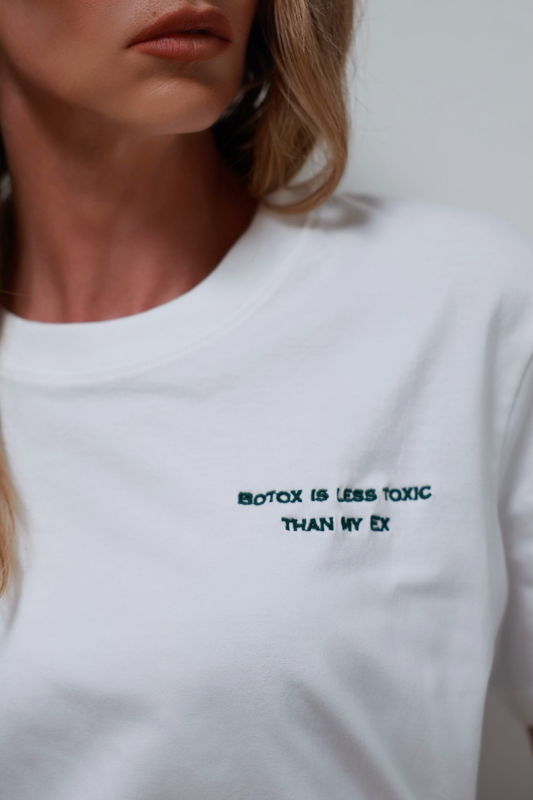 Wear your trauma with style. Il primo drop della collezione: “Botox is less toxic than my Ex. Which toxic story are YOU wearing this to?